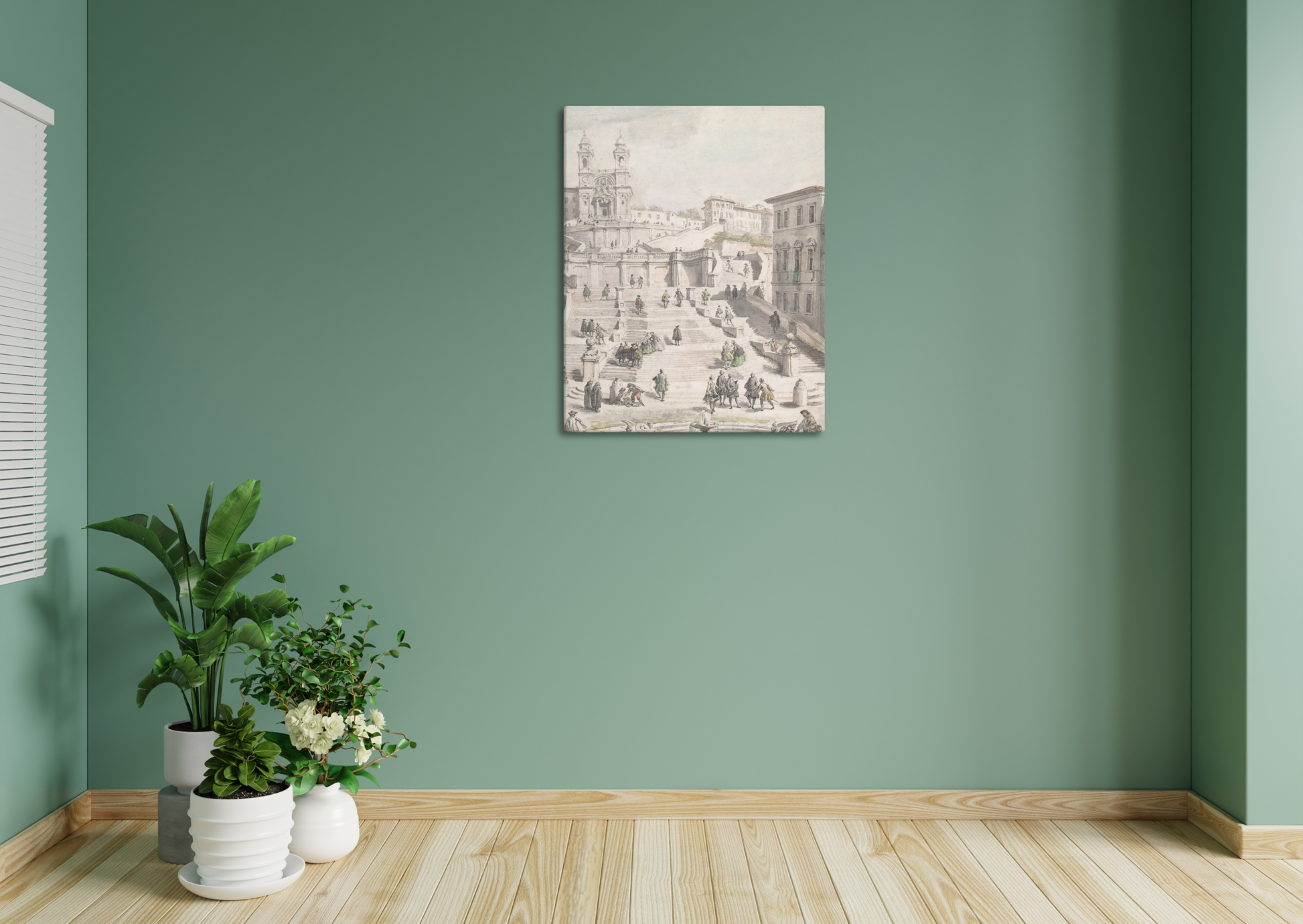 Capture the grandeur of 18th-century Rome with *Scalinata della Trinità dei Monti* by Giovanni Paolo Panini, a renowned Italian painter celebrated for his detailed architectural views. This masterpiece beautifully depicts the iconic Spanish Steps, a landmark connecting Piazza di Spagna to the Trinità dei Monti church. Painted during the height of the Grand Tour era, Panini’s work served as a visual keepsake for European aristocrats traveling through Italy, showcasing Rome’s elegance and vibrant street life.