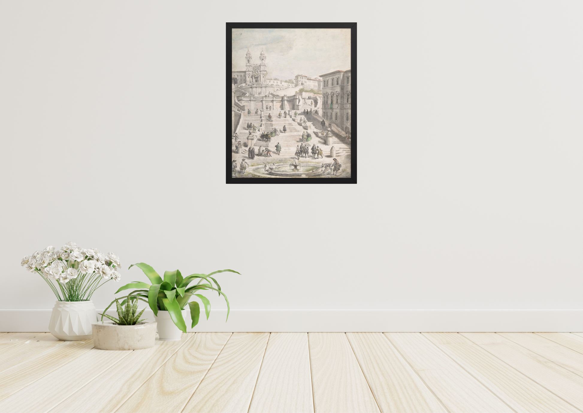 Capture the grandeur of 18th-century Rome with *Scalinata della Trinità dei Monti* by Giovanni Paolo Panini, a renowned Italian painter celebrated for his detailed architectural views. This masterpiece beautifully depicts the iconic Spanish Steps, a landmark connecting Piazza di Spagna to the Trinità dei Monti church. Painted during the height of the Grand Tour era, Panini’s work served as a visual keepsake for European aristocrats traveling through Italy, showcasing Rome’s elegance and vibrant street life.