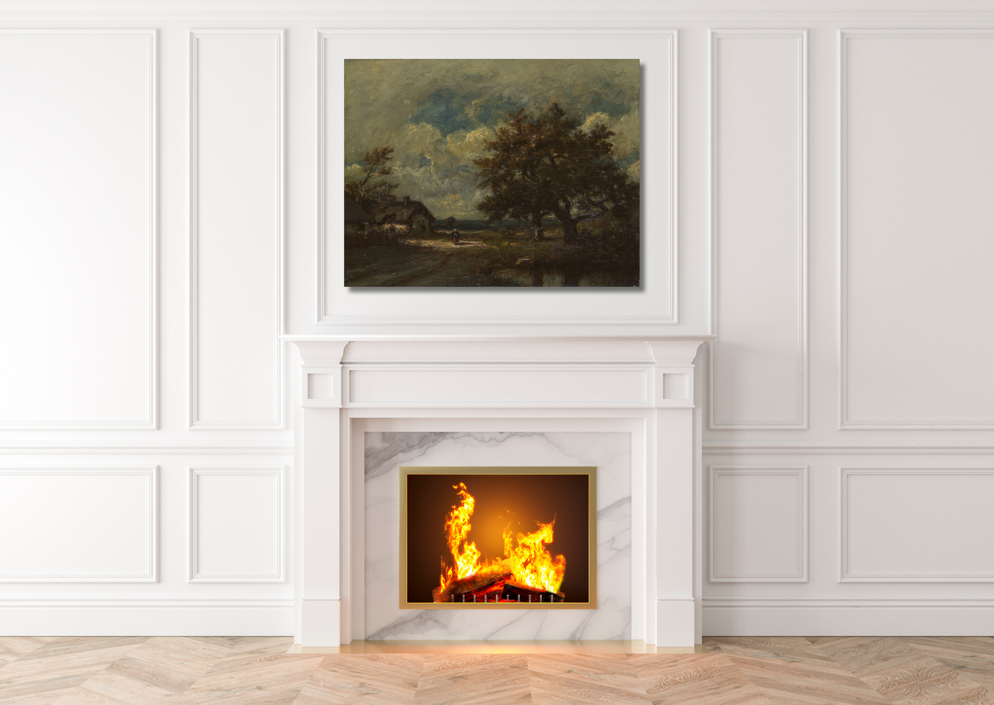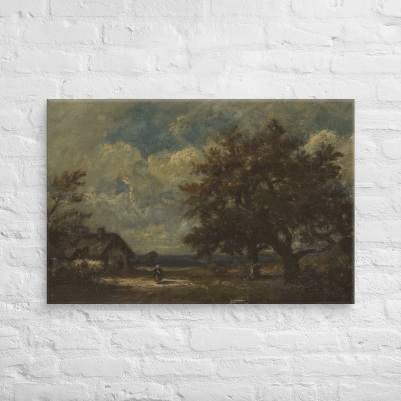 Bring the drama and beauty of 19th-century landscape art into your space with The Cottage by the Roadside, Stormy Sky by Jules Dupré. A master of the Barbizon School, Dupré was known for his moody, atmospheric landscapes that captured nature’s raw power and emotion. This canvas showcases a quaint countryside cottage set against a dramatic, stormy sky—evoking a sense of solitude and resilience.